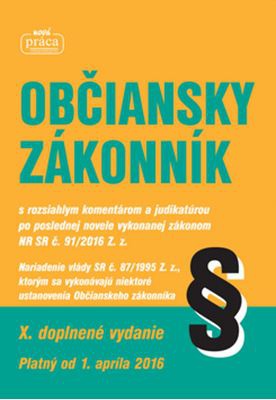 Kniha obsahuje úplné znenie zákona s rozsiahlym komentárom a judikatúrou po poslednej novele vykonanej zákonom NR SR č. 91/2016 Z. z. V poslednom období došlo k podstatným zmenám Občianskeho zákonníka a všetky zmeny sú už zachytené v tejto knihe, ktorá slúži predovšetkým potrebám dennej praxe našich čitateľov. Niektorým ustanoveniam, ktorých výklade robí v praxi ťažkosti, venujeme osobitnú starostlivosť a pri tých ustanoveniach, ktoré boli dotknuté neskoršou novelizáciou a kde pôvodná dôvodová správa už celkom nezodpovedá platnému právnemu stavu, pôvodný text dôvodovej správy nepoužívame. Súčasťou knihy je i nariadenie vlády SR č. 87/1995 Z. z. v znení neskorších predpisov, ktorým sa vykonávajú niektoré ustanovenia Občianskeho zákonníka.