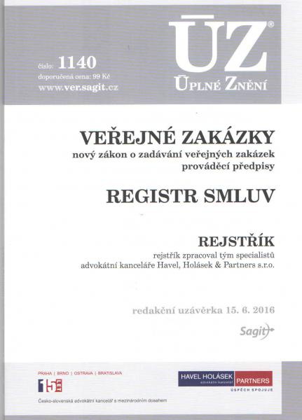 Od října 2016 nabude účinnosti nový zákon o zadávání veřejných zakázek, který zcela nahradí dosavadní zákon. Zákon mění pravidla pro zadávání veřejných zakázek, druhy a režimy veřejných zakázek, povinnosti zadavatelů a dodavatelů, uveřejňování informací o veřejných zakázkách a řadu dalších oblastí. K zákonu je zpracován podrobný rejstřík, který významně usnadní práci a orientaci v textu. Publikace obsahuje také většinu prováděcích předpisů vydaných na základě nového zákona do data uzávěrky publikace a dále obsahuje nový zákon o registru smluv.