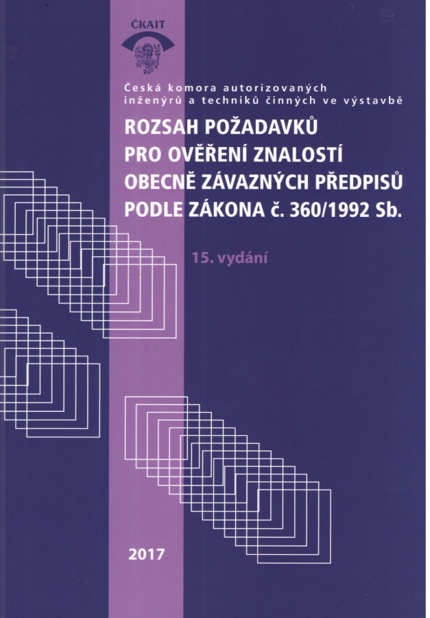 Již 15. aktualizované vydání publikace obsahuje zkušební otázky (cca 650), které jsou uspořádané do 18 oborů. Soubor otázek a ověřených odpovědí může sloužit ne jen jako pomůcka pro přípravu ke zkoušce, ale i jako příručka při řešení každodenních problémů ve stavební praxi. Kromě souboru zkušebních otázek, obsahuje publikace plné znění autorizačního zákona, Profesního a etického řádu ČKAIT, pokyny pro vyplnění žádosti o udělení autorizace a vzor formuláře žádosti.