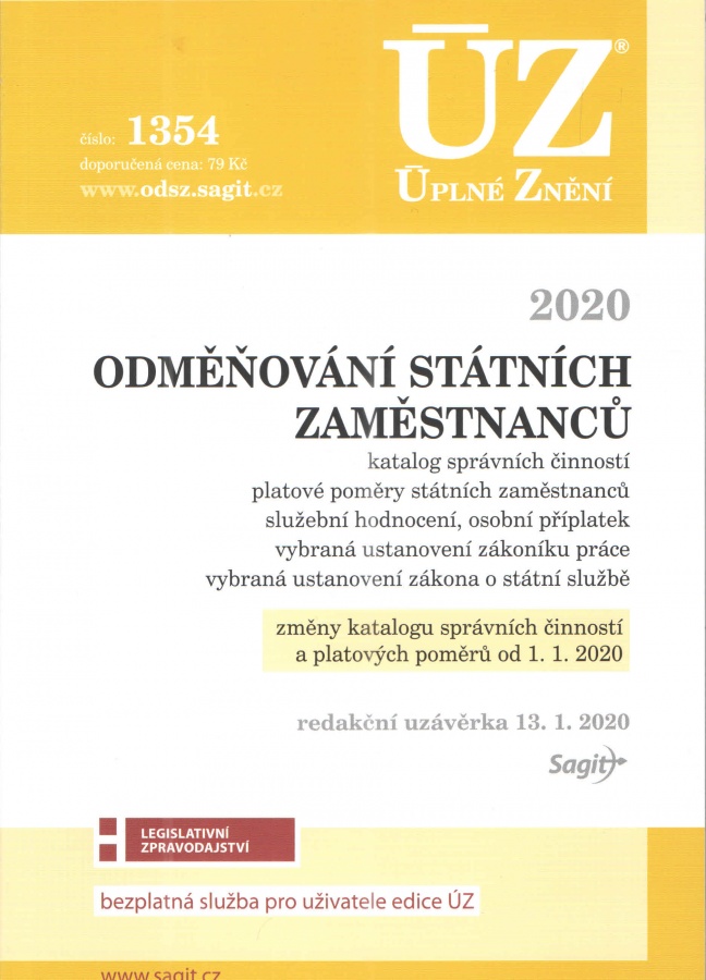 Kompletní sada předpisů pro odměňování státních zaměstnanců včetně novelizovaného katalogu správních činností a novelizovaného nařízení vlády o platových poměrech státních zaměstnanců pro rok 2020. Dále publikace obsahuje příslušná ustanovení zákoníku práce a zákona o státní službě, aktuální znění nařízení o služebním hodnocení a osobním příplatku, a nařízení o pravidlech pro organizaci služebního úřadu.