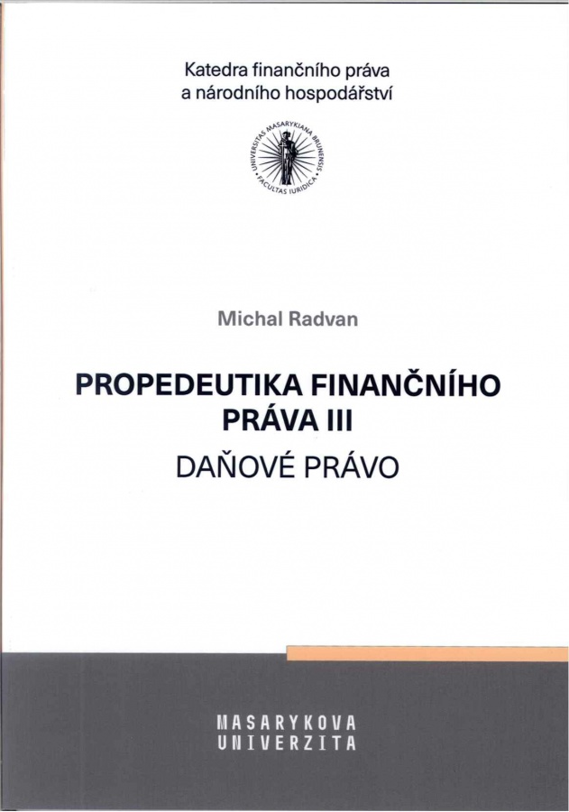 Předkládaná učebnice Propedeutika finančního práva III – Daňové právo je součástí série učebnic Propedeutika finančního práva. Je určena jak studentům bakalářských, tak magisterských programů nejen na Právnické fakultě Masarykovy univerzity. Potřebné informace pro své vzdělávání a osobní rozvoj v ní naleznou i studenti dalších oborů, například budoucí ekonomové či podnikatelé. Učebnice vychází z publikace Michala Radvana Daně a správa daní, která byla vydána v roce 2014 Masarykovou univerzitou. Text však byl v mnoha částech výrazněji přepracován, aby učebnice reagovala na legislativní vývoj v dané oblasti. To se týká zejména částí o dani z příjmů fyzických osob, akcízů a správy daní. Byly doplněny teoretickoprávní úvahy nad předmětem daňového práva, metodou jeho regulace, systémem daňového práva. Přepracovány byly pasáže k daňověprávní teorii, čímž došlo též k jiné struktuře obsahu učebnice (např. samostatná kapitola o dalších daních jako příplatcích k důchodovým daním). Učebnice zachycuje právní stav platný k 1. červenci 2021, nicméně záměrně opomíjí přechodnou regulaci vztahující se k pandemii Covid-19. Zejména co se týče sazeb daně a dalších číselných údajů (korekční prvky apod.), bude jistě třeba údaje v učebnici porovnat s účinnou právní regulací, neboť legislativní vývoj v oblasti daňového práva je velmi rychlý.