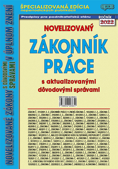 ZÁKON Č. 311/2001 Z. Z. ZÁKONNÍK PRÁCE V ZNENÍ ZÁKONA Č. 165/2002 Z. Z., ZÁKONA Č. 408/2002 Z. Z., ZÁKONA Č. 210/2003 Z. Z., ZÁKONA Č. 461/2003 Z. Z., ZÁKONA Č. 5/2004 Z. Z., ZÁKONA Č. 365/2004 Z. Z., ZÁKONA Č. 82/2005 Z. Z., ZÁKONA Č. 131/2005 Z. Z., ZÁKONA Č. 244/2005 Z. Z., ZÁKONA Č. 570/2005 Z. Z., ZÁKONA Č. 124/2006 Z. Z., ZÁKONA Č. 231/2006 Z. Z., ZÁKONA Č. 348/2007 Z. Z., ZÁKONA Č. 200/2008 Z. Z., ZÁKONA Č. 460/2008 Z. Z., ZÁKONA Č. 49/2009 Z. Z., ZÁKONA Č. 184/2009 Z. Z., ZÁKONA Č. 574/2009 Z. Z., ZÁKONA Č. 543/2010 Z. Z., ZÁKONA Č. 48/2011 Z. Z., ZÁKONA Č. 257/2011 Z. Z., ZÁKONA Č. 406/2011 Z. Z., ZÁKONA Č. 512/2011 Z. Z., ZÁKONA Č. 251/2012 Z. Z., ZÁKONA Č. 252/2012 Z. Z., ZÁKONA Č. 345/2012 Z. Z., ZÁKONA Č. 361/2012 Z. Z., NÁLEZU ÚSTAVNÉHO SÚDU SLOVENSKEJ REPUBLIKY Č. 233/2013 Z. Z., ZÁKONA Č. 58/2014 Z. Z., ZÁKONA Č. 103/2014 Z. Z., ZÁKONA Č. 183/2014 Z. Z., ZÁKONA Č. 307/2014 Z. Z., ZÁKONA Č. 14/2015 Z. Z., ZÁKONA Č. 61/2015 Z. Z., ZÁKONA Č. 351/2015 Z. Z., ZÁKONA Č. 378/2015 Z. Z., ZÁKONA Č. 440/2015 Z. Z., ZÁKONA Č. 82/2017 Z. Z., ZÁKONA Č. 95/2017 Z. Z., ZÁKONA Č. 335/2017 Z. Z., ZÁKONA Č. 63/2018 Z. Z., ZÁKONA Č. 347/2018 Z. Z., ZÁKONA Č. 376/2018 Z. Z., ZÁKONA Č. 307/2019 Z. Z., ZÁKONA Č. 319/2019 Z. Z., ZÁKONA Č. 375/2019 Z. Z., ZÁKONA Č. 380/2019 Z. Z., ZÁKONA Č. 63/2020 Z. Z., ZÁKONA Č. 66/2020 Z. Z., ZÁKONA Č. 157/2020 Z. Z., ZÁKONA Č. 294/2020 Z. Z., ZÁKONA Č. 326/2020 Z. Z., ZÁKONA Č. 76/2021 Z. Z., ZÁKONA Č. 215/2021 Z. Z., ZÁKONA Č. 407/2021 Z. Z., ZÁKONA Č. 412/2021 Z. Z., UZNESENIA ÚSTAVNÉHO SÚDU SR Č. 539/2021 Z. Z., ZÁKONA Č. 82/2022 Z. Z., ZÁKONA Č. 125/2022 Z. Z., ZÁKONA Č. 222/2022 Z. Z., ZÁKONA Č. 248/2022 Z.Z. A ZÁKONA Č. 350/2022 Z. Z.