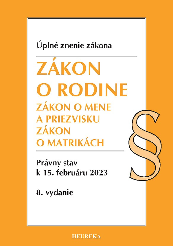 Publikácia obsahuje aktualizované úplné znenie zákonov s právnym stavom k 15. februáru 2023: Zákon č. 36/2005 Z.z. o rodine so zmenami poslednej novelizácie zákona č. 338/2022?? Z.z. a zákona č. 408/2022? Z.z. Z.z; Zákon č. 300/1993 Z.z. o mene a priezvisku so zmenami poslednej novelizácie zákona č. 408/2022 Z. z.; a Zákon č. 154/1994 Z.z. o matrikách so zmenami poslednej novelizácie zákona č. 408/2022 Z. z.