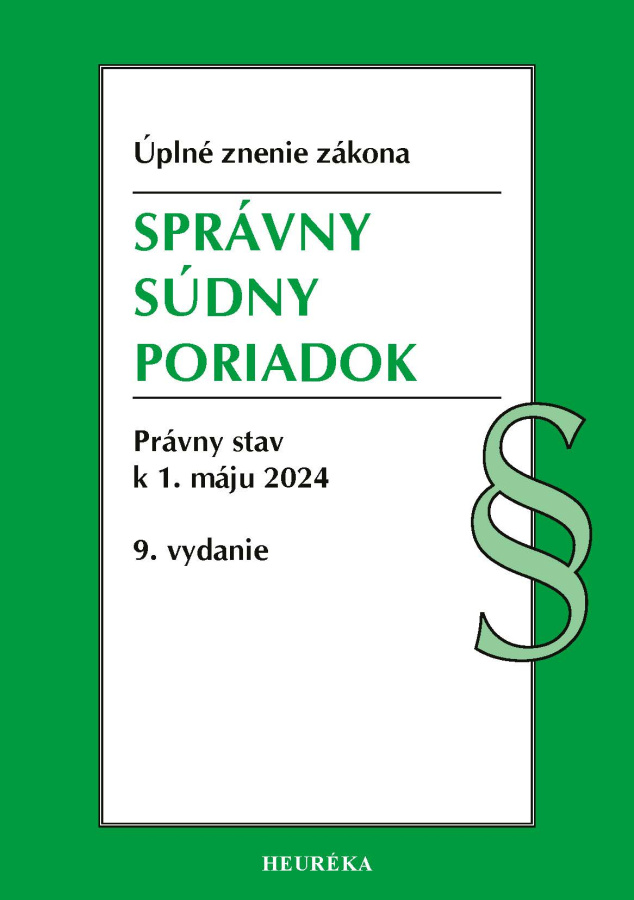 Publikácia obsahuje aktualizované úplné znenie zákona č. 162/2015 Z.z. Správneho súdneho poriadku s právnym stavom k 1. máju 2024, so zmenami poslednej novelizácie zákona č. 40/2024 Z. z. s účinnosťou od 15. marcu 2024.