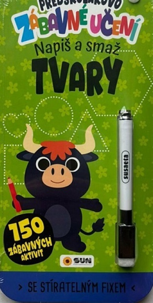 Kniha 150 zábavných aktivit - Předškolákovo zábavné učení: TVARY - napiš a smaž - představuje novou, hravou formu výuky, která děti nejen pobaví, ale zároveň rozvíjí jejich asociační schopnosti, paměť, orientaci i představivost. Určena je především předškolákům, kteří si procvičí správné držení tužky a uvolnění ruky a základní geometrické tvary jako kruh, čtverec, trojúhelník, obdélník, oválek a lichoběžník, které se používají pro přípravu na školní zápis. Učení tvarů děti rozvíjí jejich zrakové vnímání, prostorovou orientaci, jemnou motoriku a schopnost rozlišovat a porovnávat předměty podle velikosti, barvy a tvaru. Tyto dovednosti jsou důležité pro správné pochopení a zvládnutí psaní a dalších školních dovedností. Tyto úkoly se často objevují při zápisu do školy. Kniha má praktický a příjemný formát, je k ní připojena mazací fixka, kterou děti mohou tahy snadno smazat, opravit a opakovat úkoly znovu. Celá koncepce je chytrá, zábavná a šetrná. Vstupte s nimi do světa dobrodružství, kde učení není nikdy nudné!