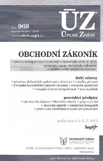 Obchodní zákoník byl od posledního vydání dotčen dalšími 2 novelami. Publikace byla dopněna o nový zákon o některých opatřeních ke zvýšení transparentnosti akciových společností. Dále v publikaci najdete zákon o přeměnách obchodních společností a družstev, zákon o nabídkách převzetí, zákon o evropské společnosti, zákon o evropské družstevní společnosti, zákon o státním podniku a prováděcí vyhlášky. Celkem 19 předpisů v úplném znění se zvýrazněním všech novelizovaných pasáží.